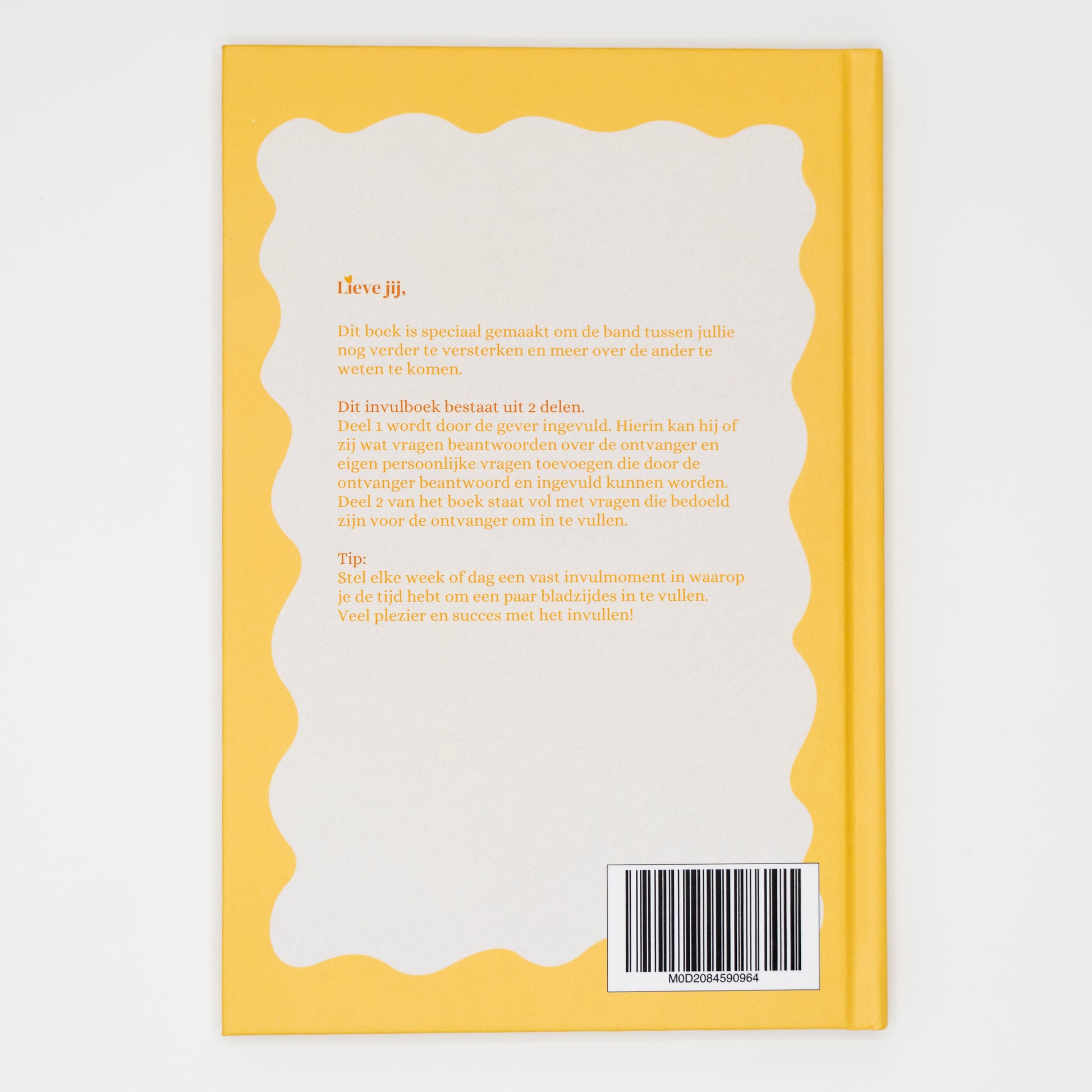 Lieve Jij is een veelzijdig invulboek dat je kunt geven aan wie je maar wilt: een tante, broer, zus, beste vriend(in), mentor of iemand die je al lang niet meer hebt gezien.