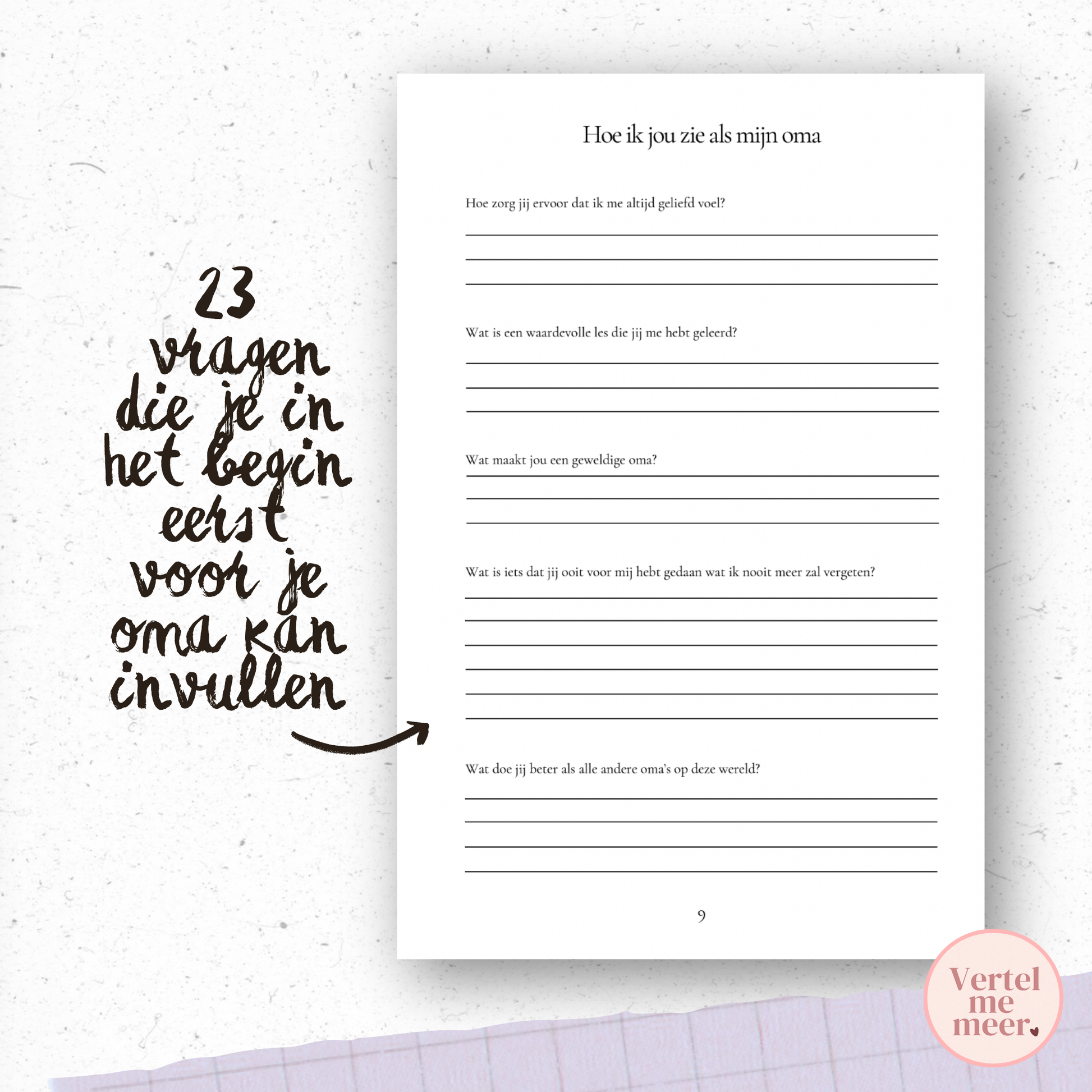1. In het eerste deel vul jij als kleinkind vragen over je oma in en kun je persoonlijke vragen toevoegen.