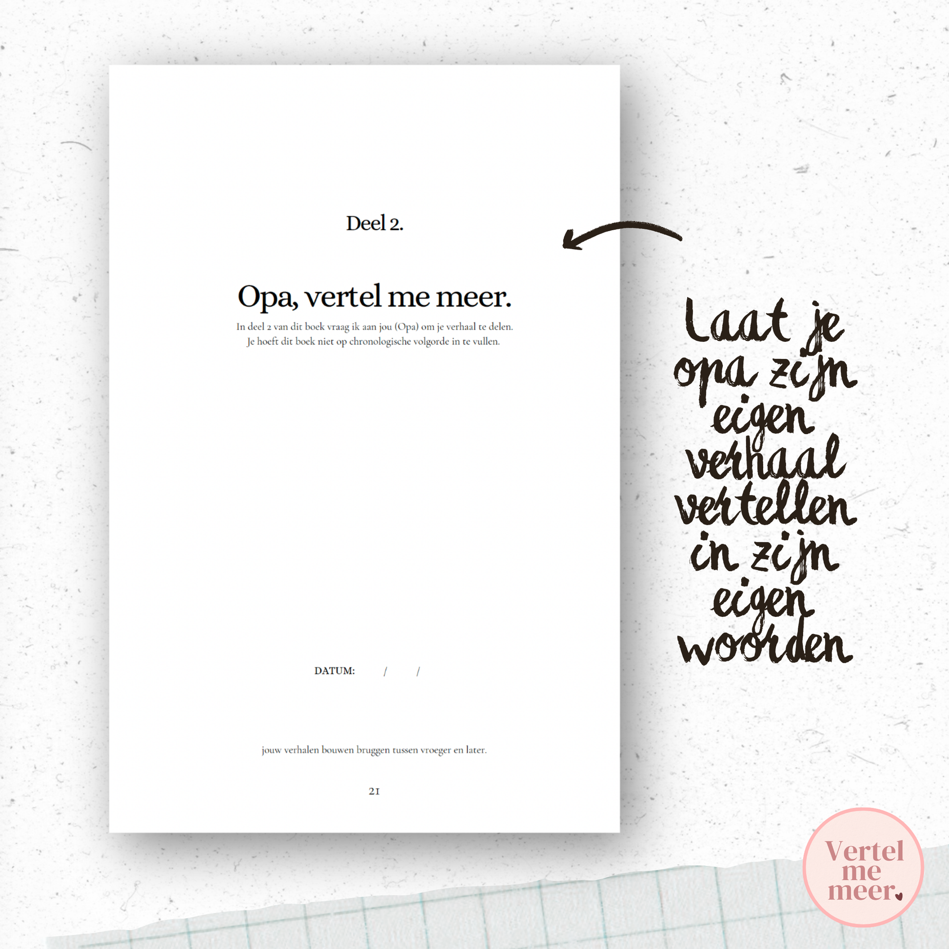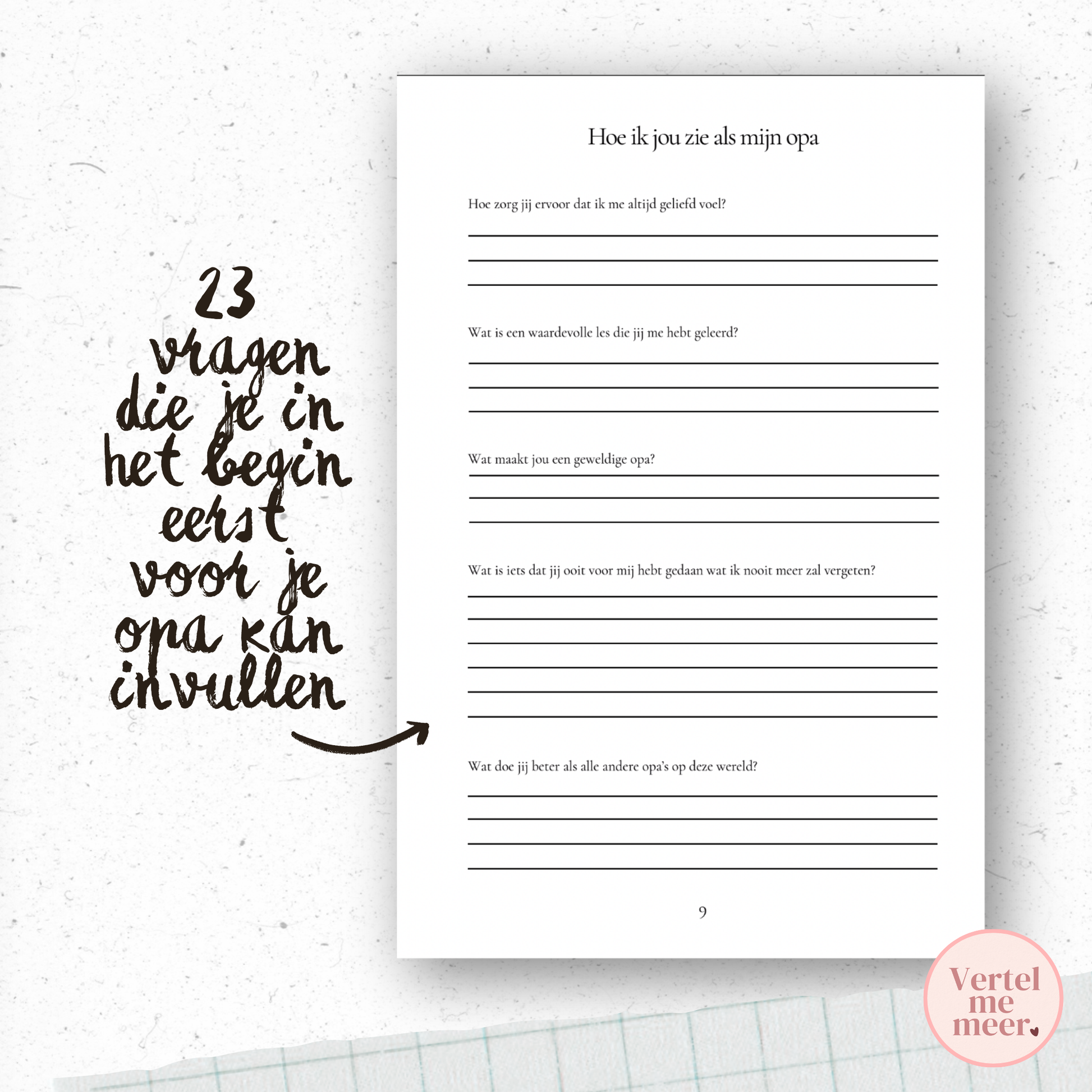 1. In het eerste deel vul jij als kleinkind vragen over je opa in en kun je eigen vragen toevoegen.