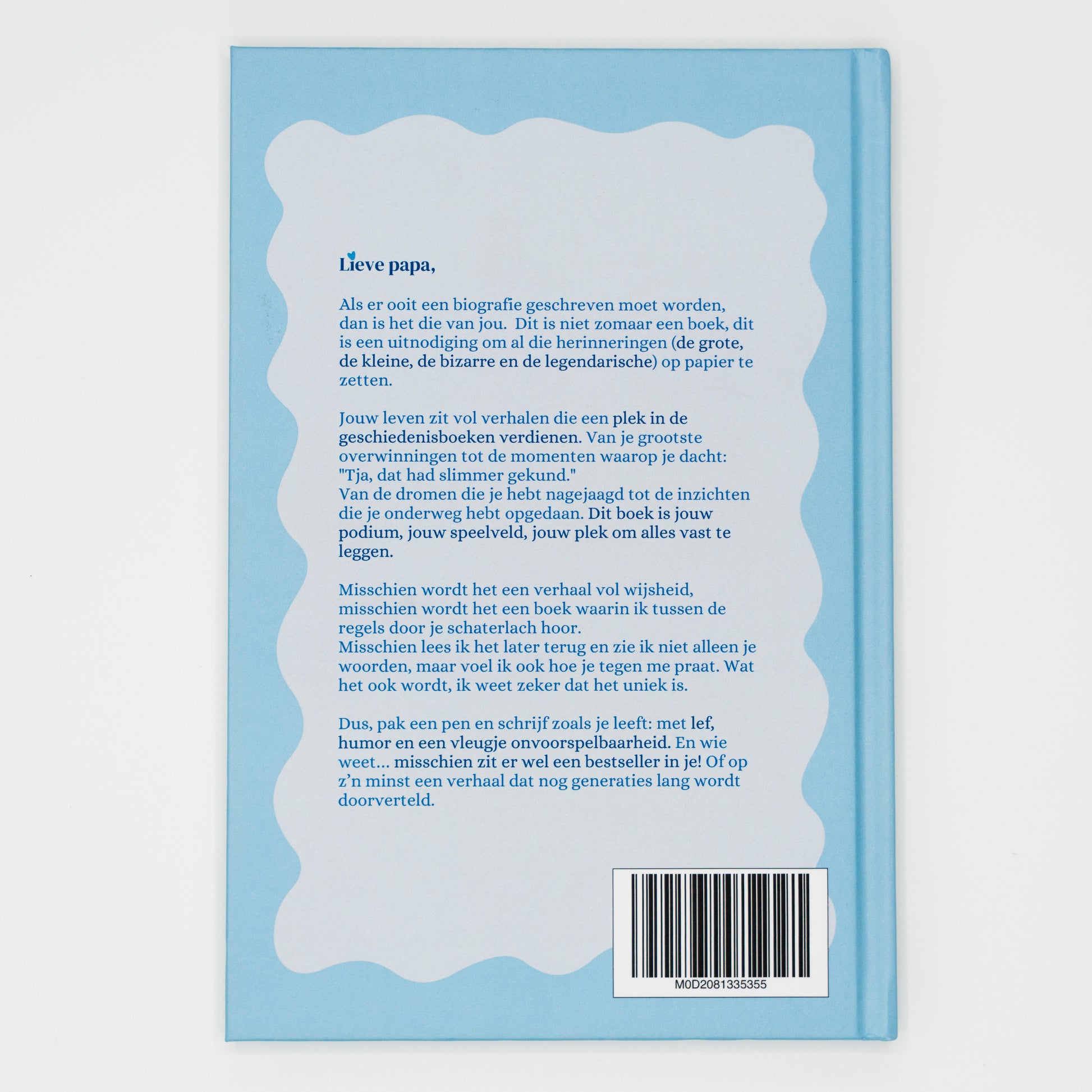 In een tijd waarin we elkaar steeds minder echt spreken, is het waardevol om stil te staan bij de verhalen van de mensen die ons het meest dierbaar zijn. Lieve Papa is een invulboek dat je aan je vader geeft, een bijzonder cadeau om herinneringen vast te leggen voordat het moment voorbij is.